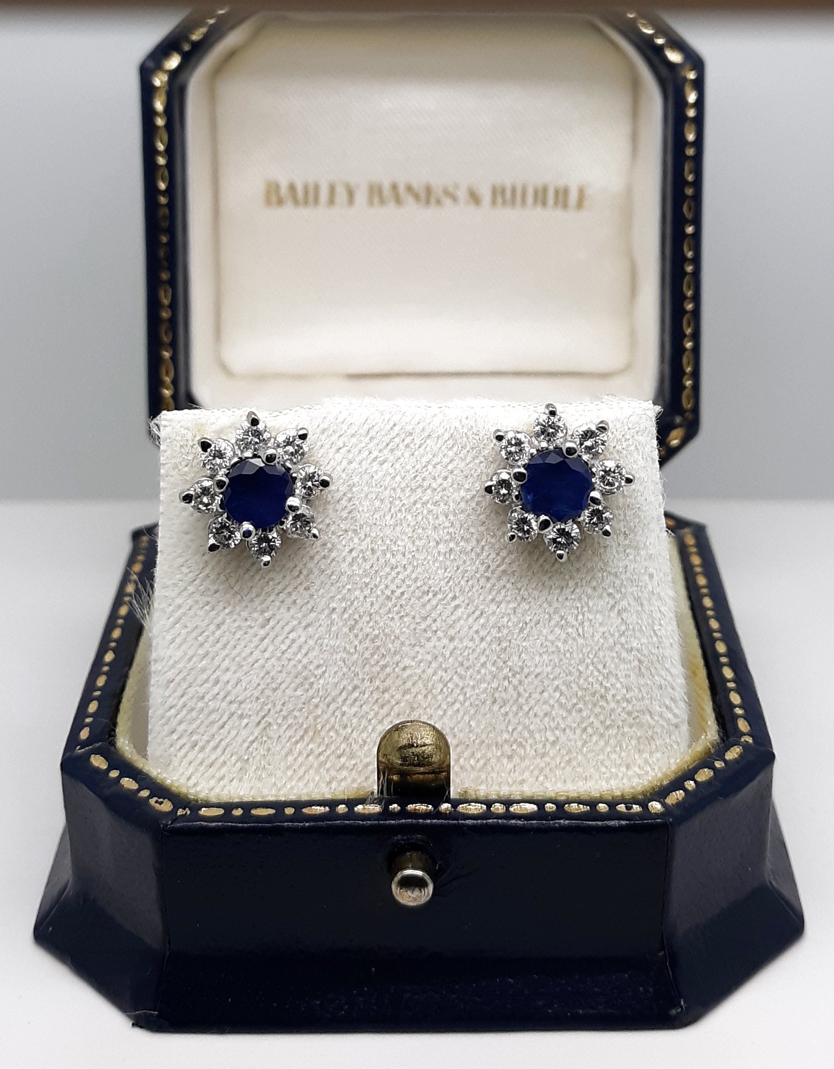 The total estimated, combined and approximate weight of the sapphires in both earrings comes to 1.06 carats; and the total estimated, combined and approximate weight of diamonds for both earrings comes to 0.79 carats.